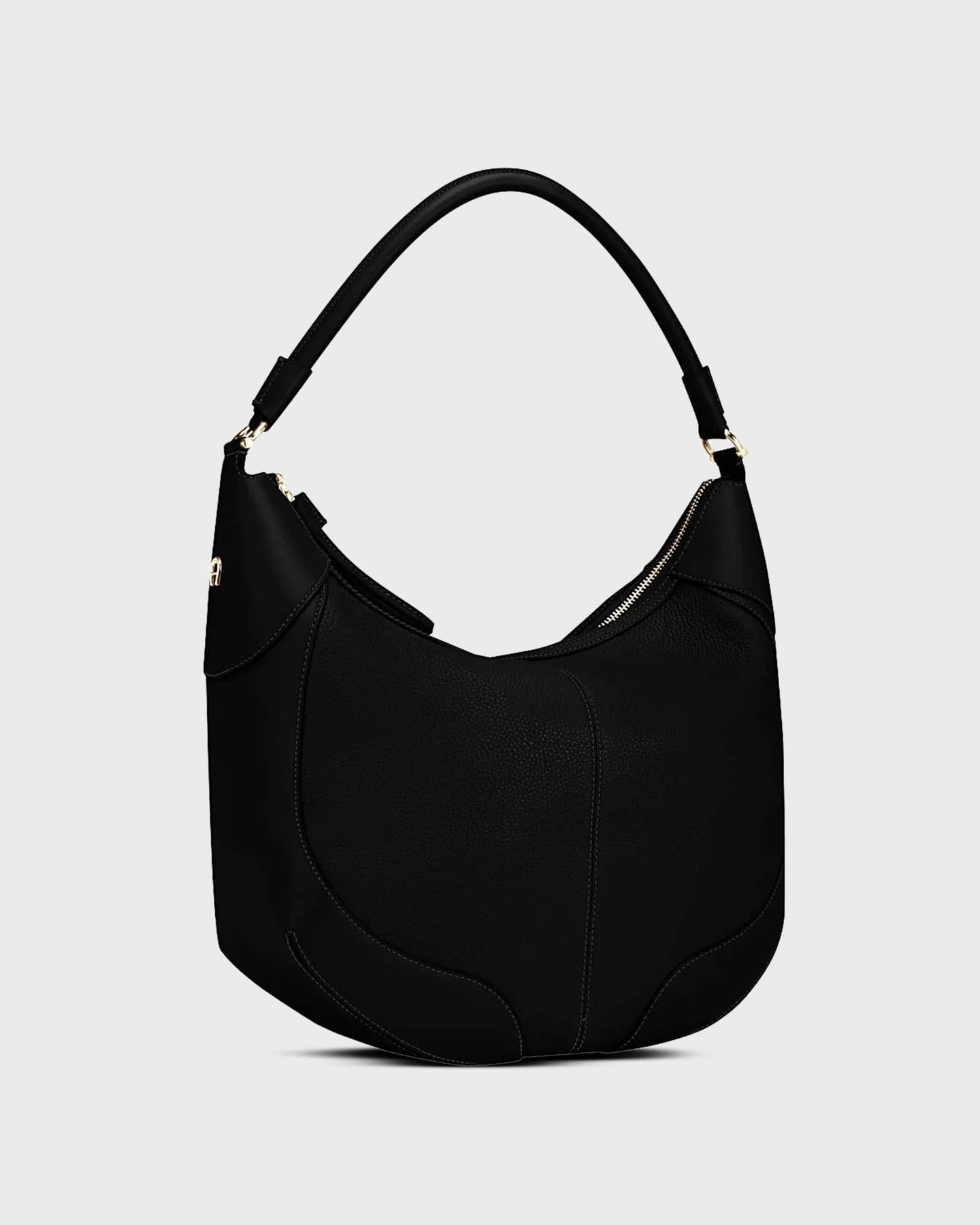 Suchst du eine Beuteltasche, die Klasse und Alltagstauglichkeit verbindet? Die Ambra M Beuteltasche Black von Aigner besticht durch genarbtes Rindsleder, klare Nahtführung und glänzende hellgoldfarbene Details. Harmonische Form und vielseitig tragbar – ein stilvoller Begleiter für urbane Looks mit Persönlichkeit.