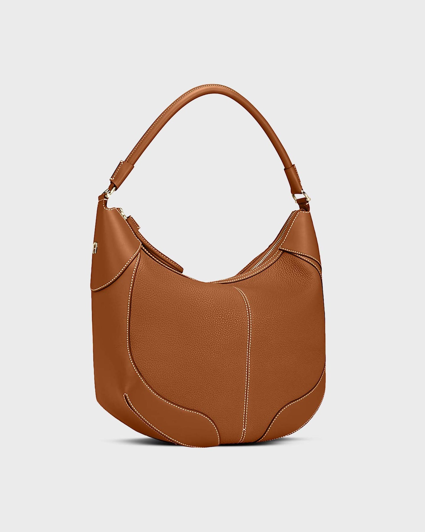Willst du einen City-Begleiter, der sofort Eindruck macht? Die Ambra M Beuteltasche Cognac von Aigner kombiniert genarbtes Rindsleder mit markanter Nahtführung und hellgoldfarbenen Akzenten. Harmonische Form, vielseitig tragbar – perfekt für urbane Looks, die Stil und Funktion mühelos verbinden. Ein echtes Statement für jeden Tag.