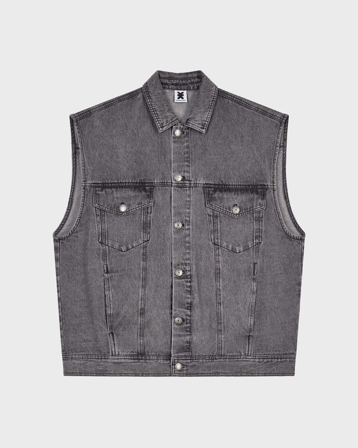 Die Denim Vest Grey von KARO KAUER bringt den kultigen Oversized-Style zurück – jetzt in angesagtem Grau. Mit Fake Leather Badge auf dem Rücken, klassischer Knopfleiste und praktischen Brusttaschen verbindet sie lässigen Streetstyle mit zeitlosem Denim-Charme. Perfekt zum Layern, casual kombinieren oder einfach als Statement-Piece.