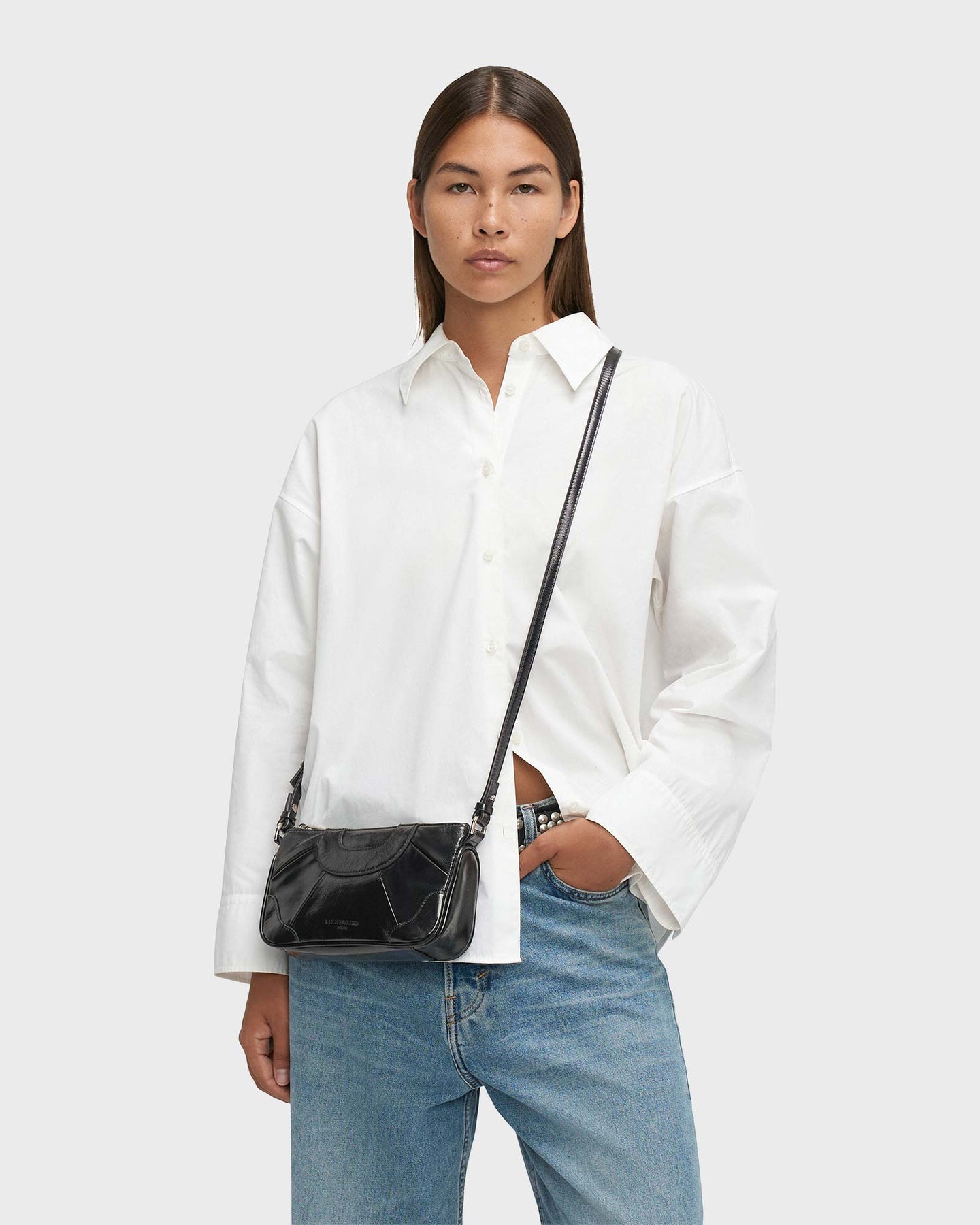 Die Esther Crossbody XS Black von LIEBESKIND BERLIN ist ein modernes Statement aus glossy Rindsleder. Geometrische Einsätze und markante Nähte erinnern an die klare Architektur Berlins, während Falten dem Design Dynamik geben. Im kompakten Hauptfach mit zusätzlichem Steckfach verstaust du deine Essentials mühelos. Mit abnehmbarem, verstellbarem Gurt trägst du die Tasche so, wie es zu dir passt.