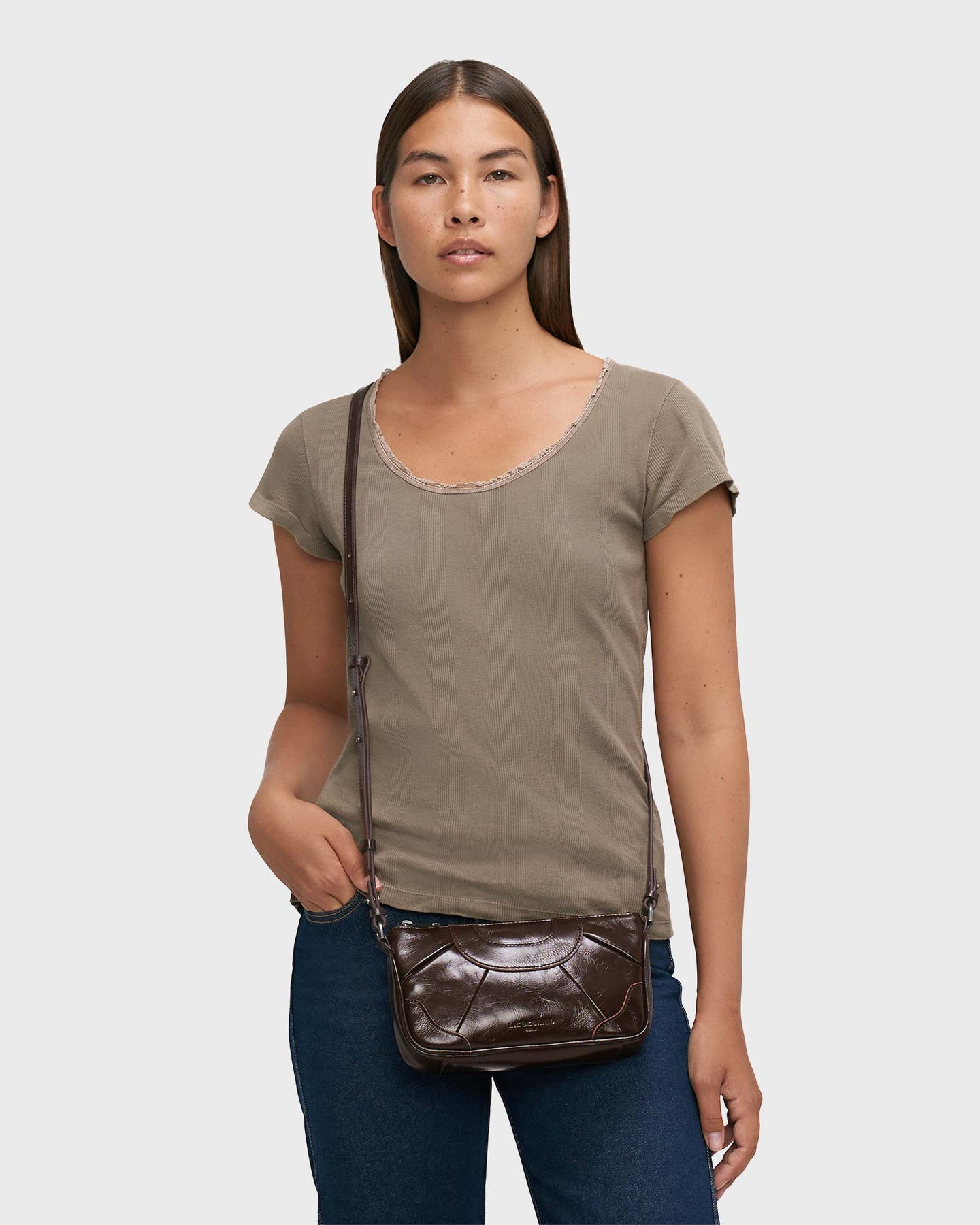 Die Esther Crossbody XS in sattem Burgundy vereint urbanen Charme mit edler Raffinesse. Klare Linien und feine Nahtdetails verleihen ihr eine moderne, architektonische Anmutung. Das kompakte Hauptfach mit Reißverschluss bietet Platz für deine Essentials, während der abnehmbare Gurt flexible Tragemöglichkeiten eröffnet.