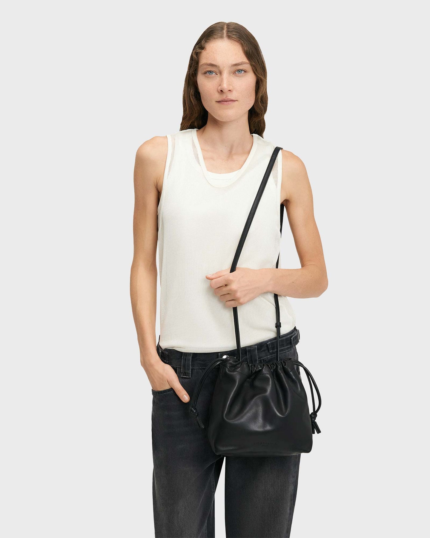 Die Lya Hobo S Black von LIEBESKIND BERLIN überzeugt mit weichem Veloursleder und sanft gerundeter Silhouette. Der Kordelzug mit verstecktem Magnetverschluss schützt den Innenraum, während Reißverschluss- und Steckfächer Ordnung schaffen. Der verstellbare Schultergurt macht sie flexibel tragbar – perfekt für Alltag, City oder unterwegs. Ein Piece, das raffinierte Einfachheit mit zeitloser Eleganz vereint