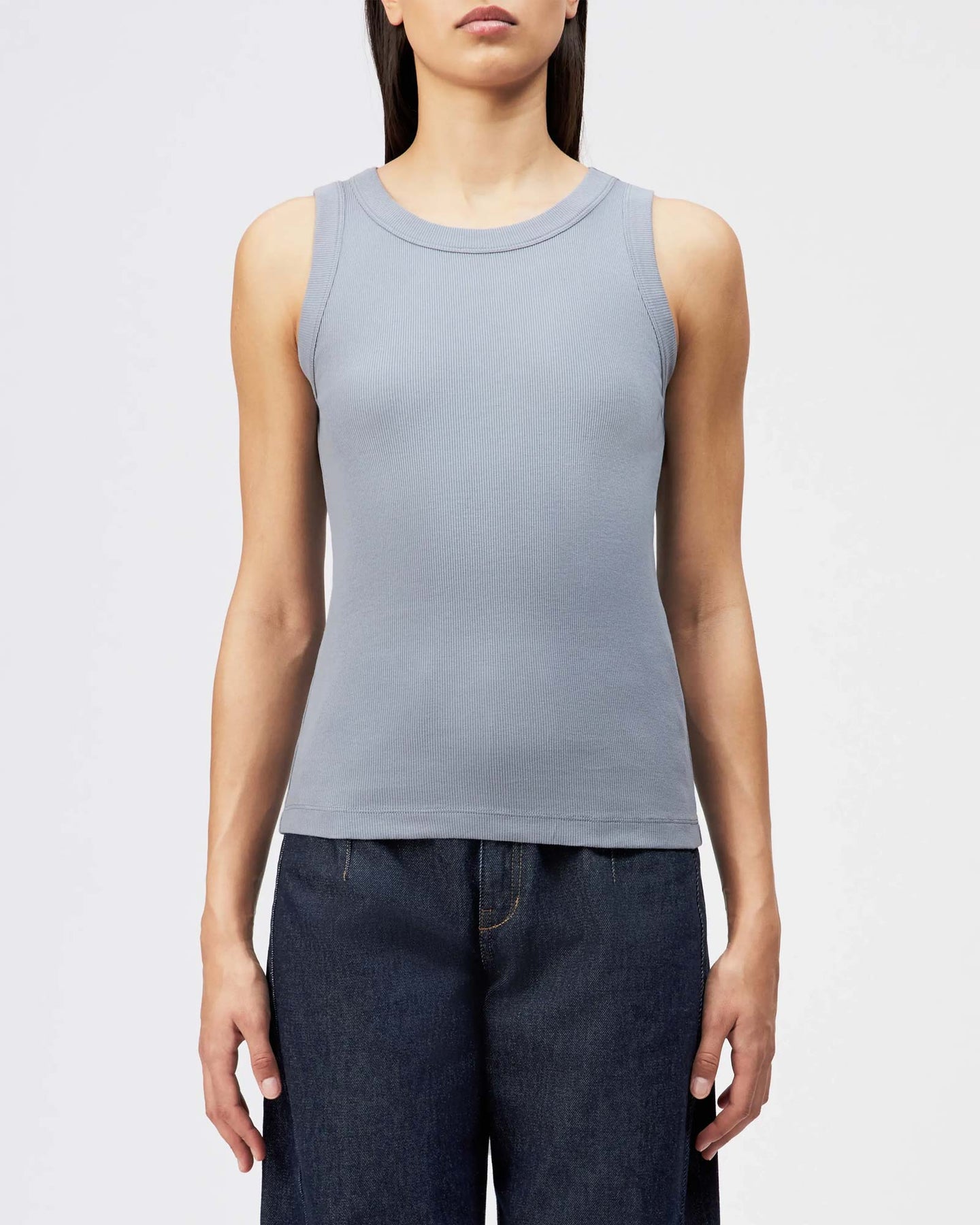 Clean, modern und herrlich unkompliziert: Das Olina Dusty Sky von Drykorn ist ein ärmelloses Jersey-Top mit figurbetonter Silhouette und Rundhalsausschnitt. Aus 100 % Baumwolle gefertigt, sitzt es angenehm eng und ist das perfekte Essential für warme Tage oder als stilvolle Layering-Basis. Minimalistisch, stark und immer richtig.